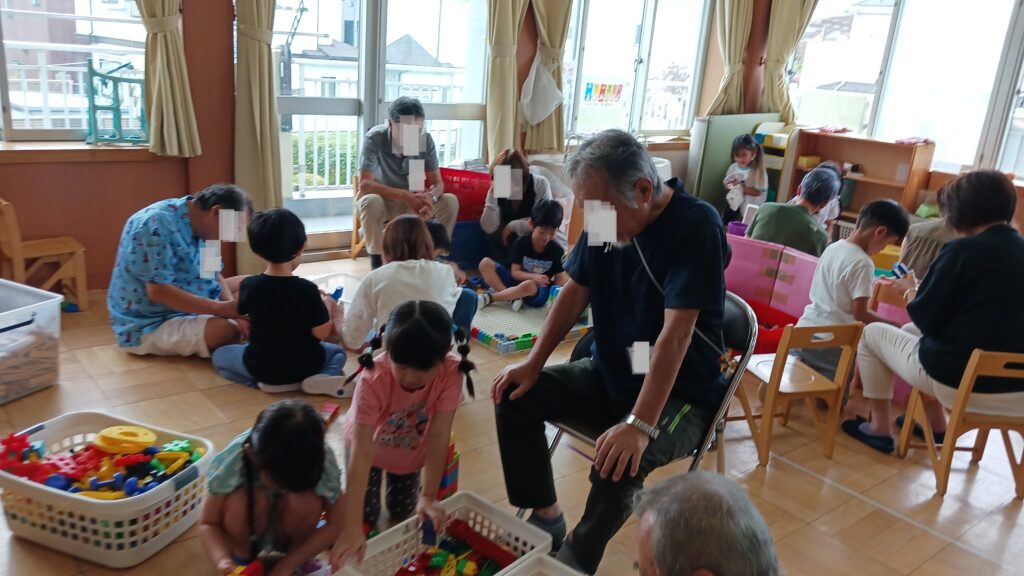 おじいちゃんおばあちゃんをお招きして、じゃんけん列車や宝探しゲームなどを一緒に楽しみました!