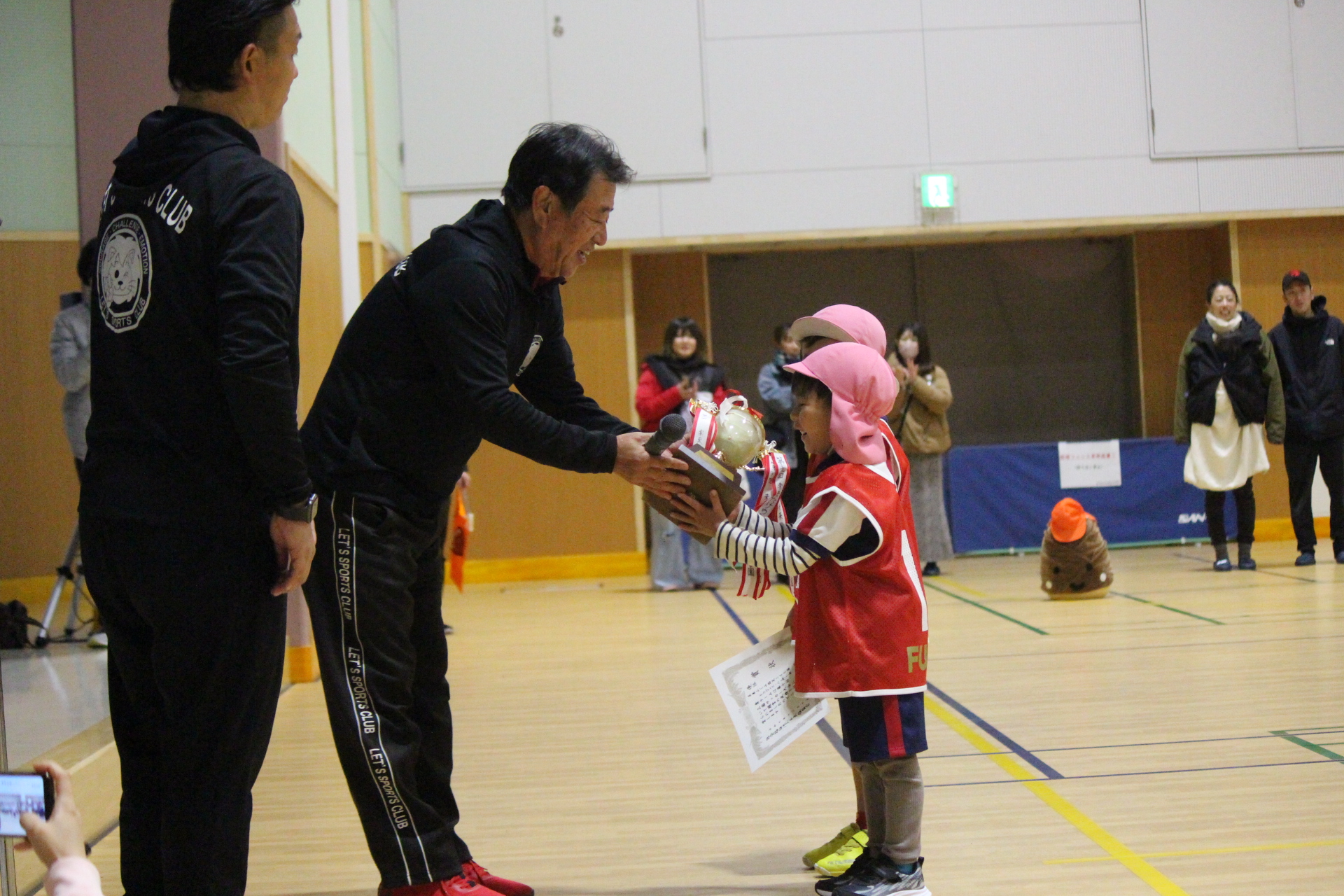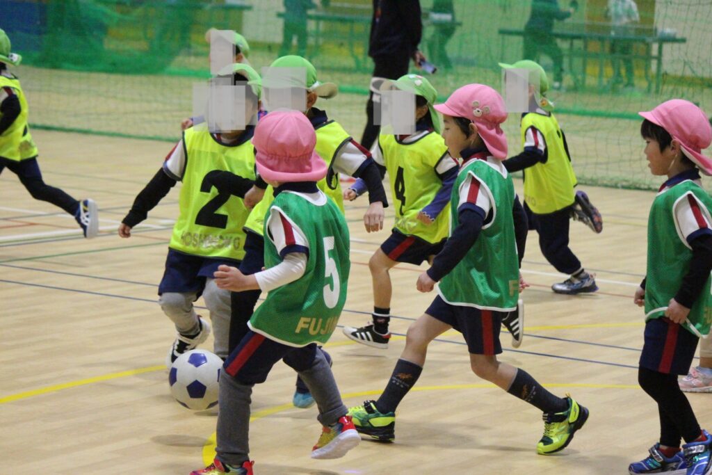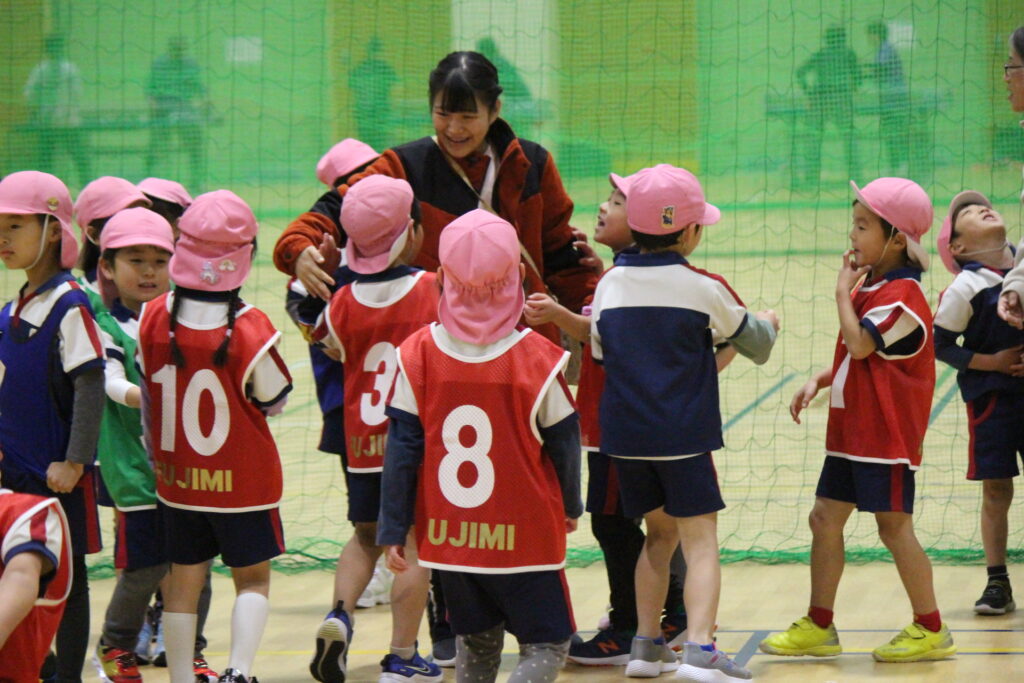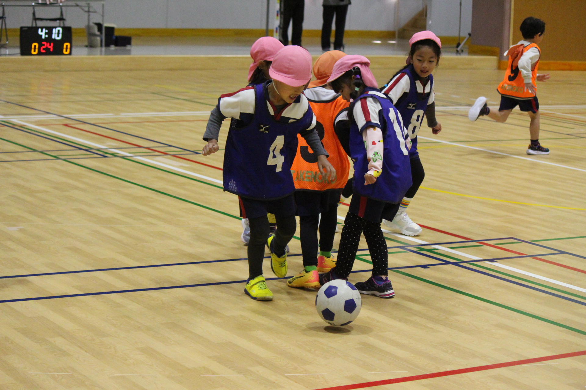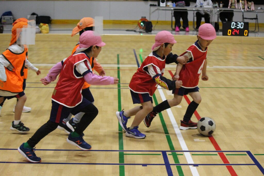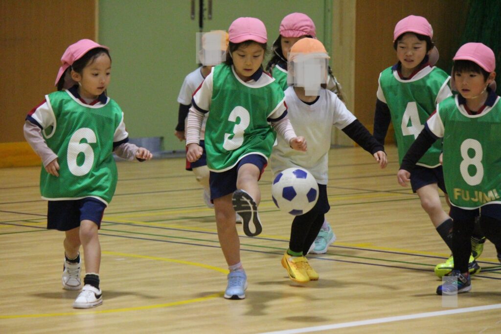 子ども達が考えたチーム名「ドラゴンボール」「くだものピンクきょうりゅう」「ドラゴンタイガー」の3チームに分かれて、姉妹園とサッカー対決!「がんばるぞ!おー!」と円陣を組んだり、作戦を考えたりしながら、一生懸命ボールを追いかけていた子ども達。見事優勝してトロフィーをもらいました!