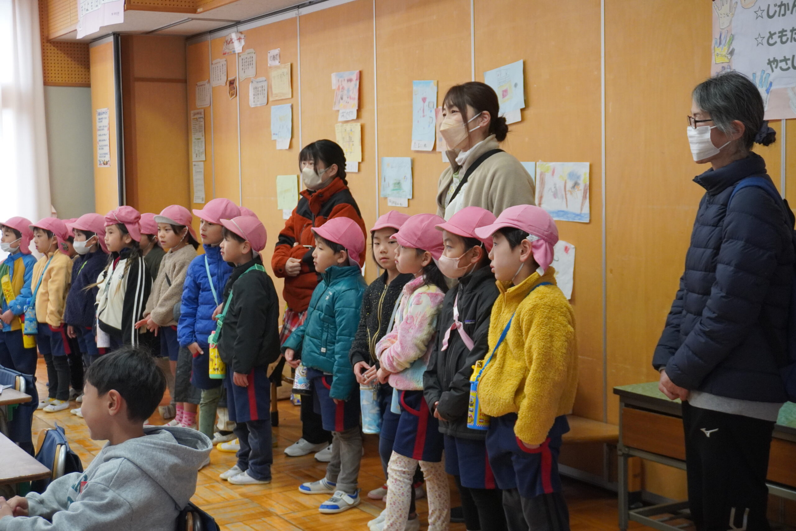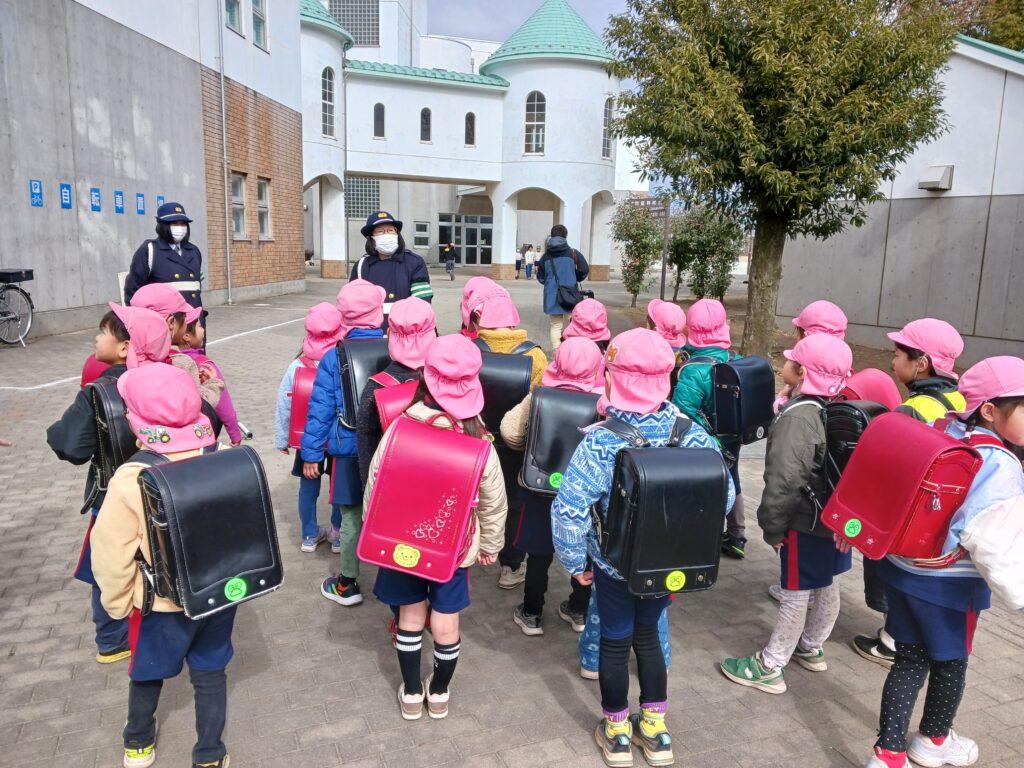 2026.2.20 通学路体験(5歳児) 4月から小学1年生になる子ども達が、ランドセルを背負い、登下校の練習をしました! 小学校内にも入り、授業や休み時間の様子を真剣な表情で見学していた子ども達でした。 < アルバム一覧にもどる < 2026.2.27 食育~野菜スタンプ~(0~2歳児) 2026.2.7 生活発表会(3~5歳児) >
